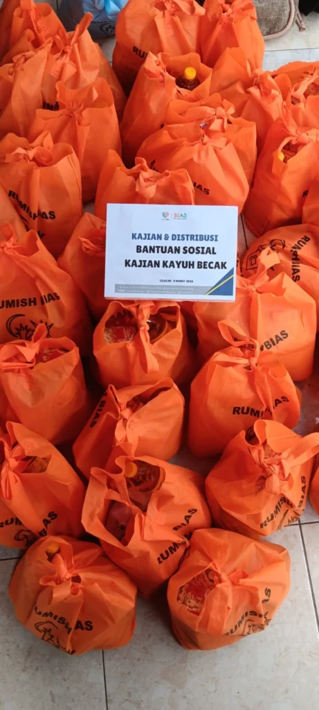 Pada hari Sabtu, 9 Maret 2024 telah dilaksanakan kegiatan KAJIAN KAYU BECAK bersaman dengan acara Baksos Rumish. Lokasi kegiatan dilaksanakan di SD BIAS yang bertempatan di Jl Gatot Subroto No 19 Tambak, Sari Sidanegara, Kec Cilacapa Tengah, Cilacap Jawa Tengah. Jumlah peserta yang mengikuti Kajian Kayu Becak 30 peserta yang mengikuti peserta merupakan perkumpulan para tukang becak di Kota Cilacap.